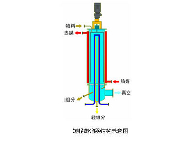 短程蒸餾是一種在高真空(<10Pa)條件下,在加熱面上被蒸發(fā)的分子經(jīng)過盡可能短的距離到達(dá)冷凝面進(jìn)行冷凝,從而實(shí)現(xiàn)液-液分離的蒸餾過程。當(dāng)加熱面與冷凝面的距離小于或等于操作真空和溫度下的被蒸發(fā)分子的平均自由程時(shí),該蒸餾過程也被稱為分子蒸餾。它具有蒸餾溫度低、蒸餾真空度高、受熱時(shí)間短、分離程度高等特點(diǎn)。