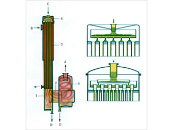 除了管材尺寸以外,選擇合適的液體分布裝置對(duì)獲得潤濕很重要,兩種液體分布裝置。由于加熱管中液體量低且流速快,產(chǎn)品停留時(shí)間頗為短暫,因此,可以溫和地蒸發(fā)熱敏性物料。